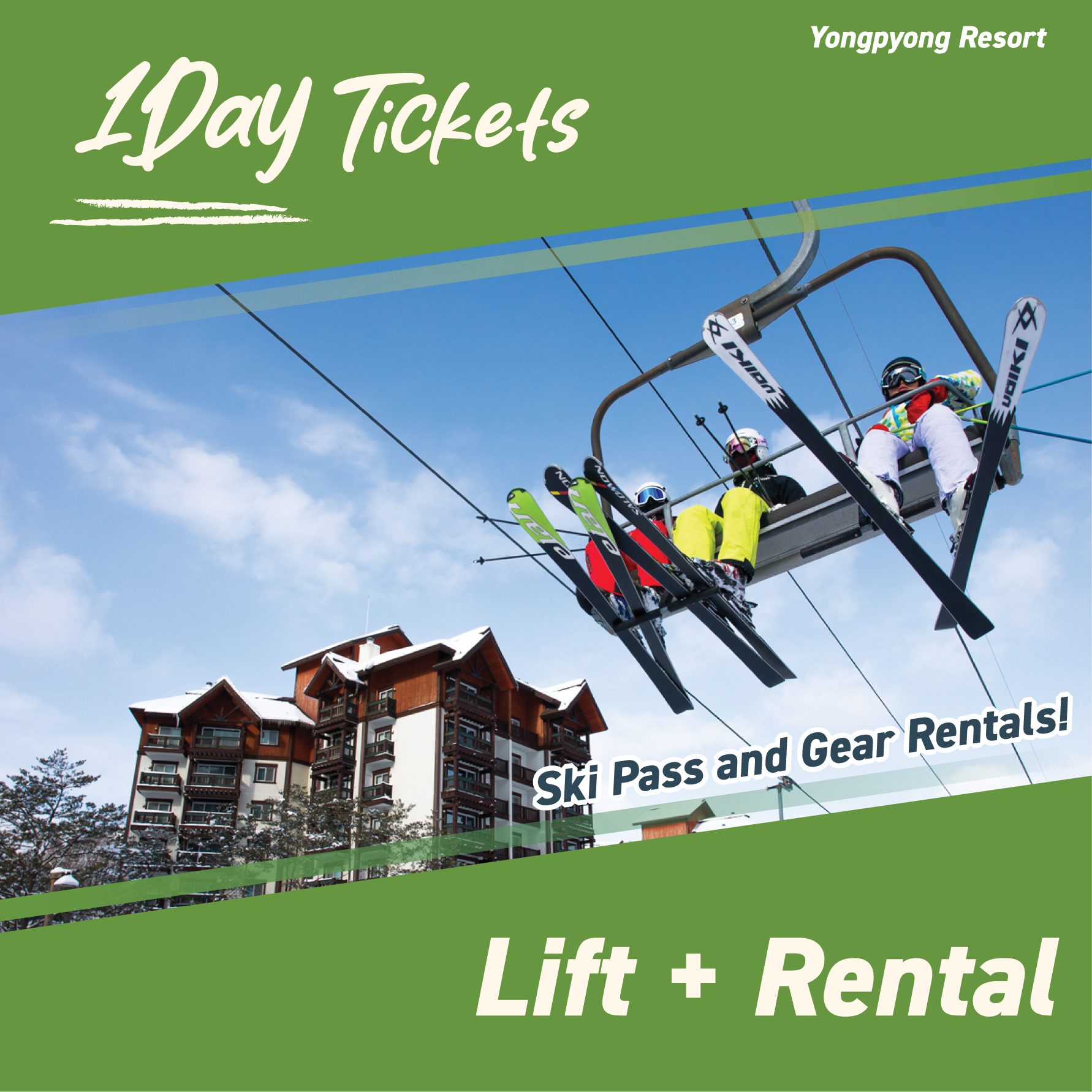 - Including 1-day ski pass with ski gear rentals