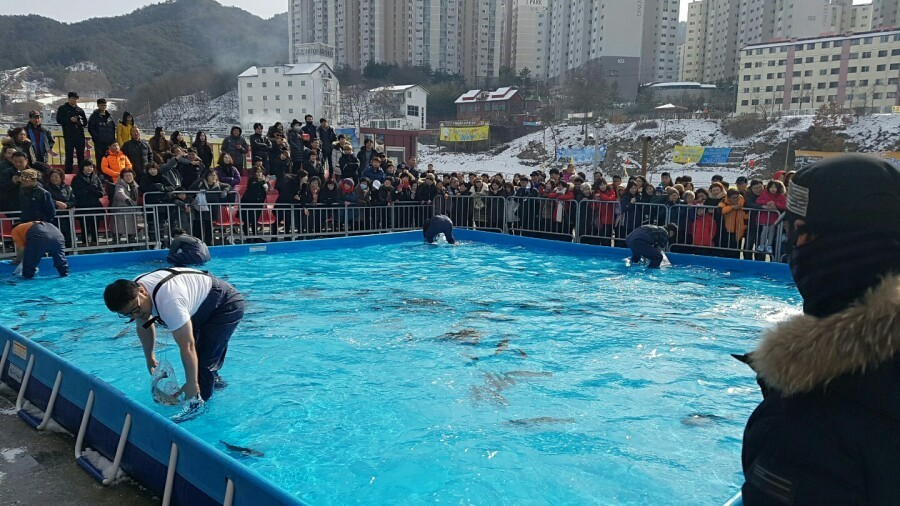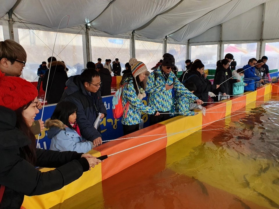 From fry to 12 month-old healthily raised Hongcheon trout, you can all enjoy here at Hongchon Ice Fishing Festival,