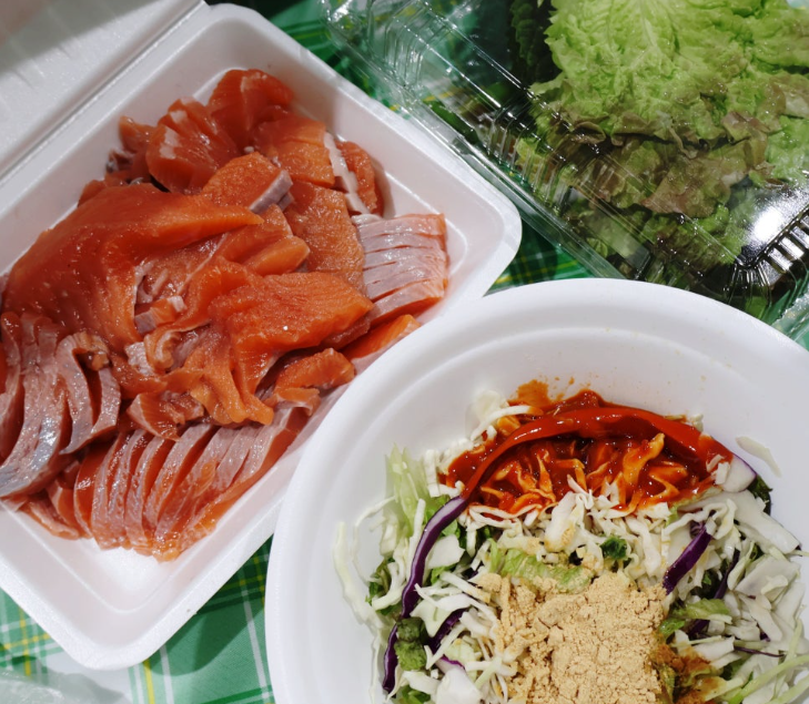 You can either take your fish home or enjoy it on the spot, raw or grilled,