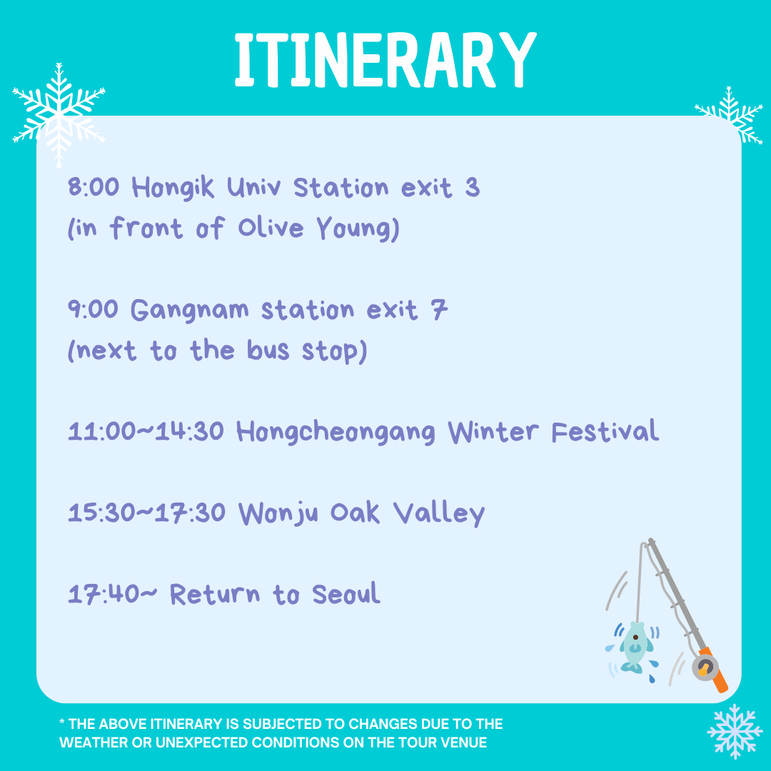 Foreigners (holders of international passports) will receive a 5,000 KRW discount when activities in the Hongcheongang winter festival event.